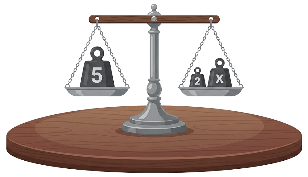 That is, we literally “equate” the equality, balance abstract scales in search of equilibrium, look for values at which the left side will be equal to the right. At x = 1 the scales are balanced, and at x = 2 the left bowl of the scale is heavier than the right one and they tilt to the left.
